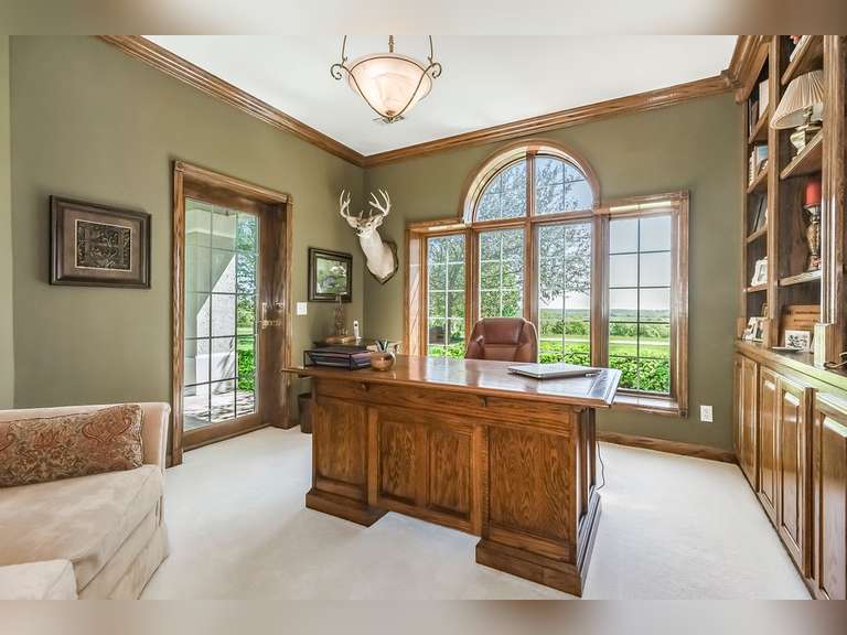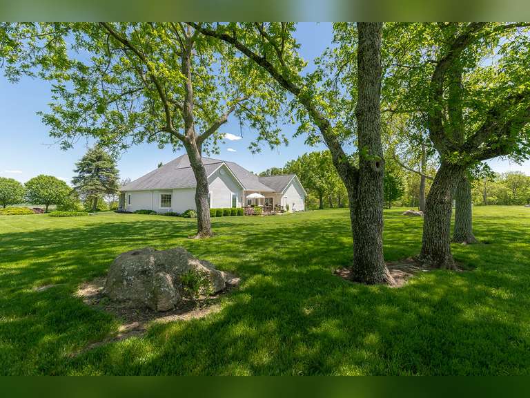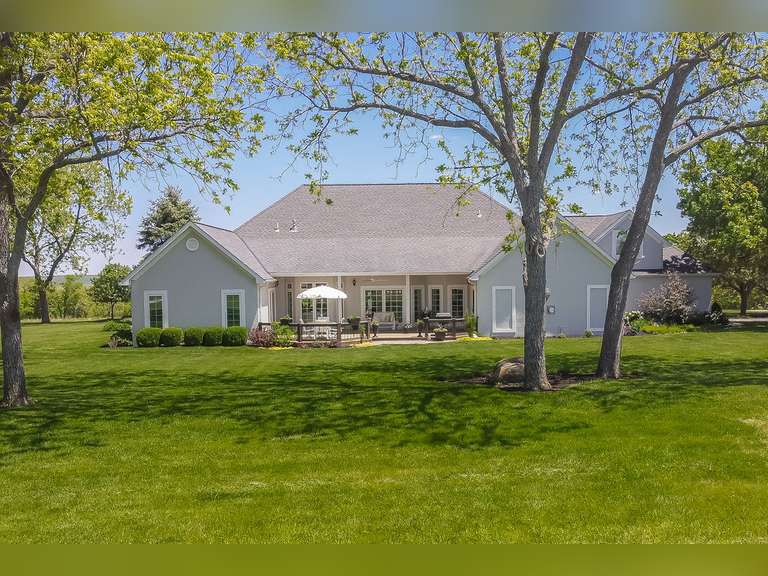 Custom Built in 2000, 3 bedrooms, 3 baths, 2 living areas, 2 dining areas, sunroom, office, extra-large 2 car garage with epoxy coated floors located on beautiful hilltop location overlooking Little Sugar River Valley!